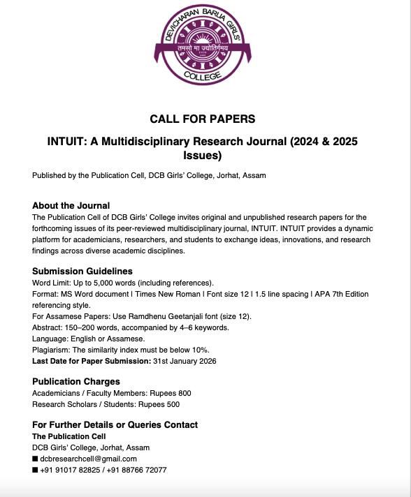 The Publication Cell of DCB Girls College invites original and unpublished research papers for INTUIT